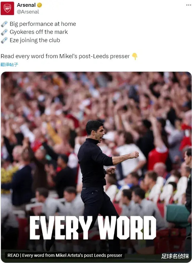 可以说如果不是埃泽心里真的把阿森纳放在很重要的位置上,这笔交易就不会成行,因为他如果不主动告诉阿尔特塔,或许直接就签字了,到时候木已成舟,阿森纳想出手都晚了。