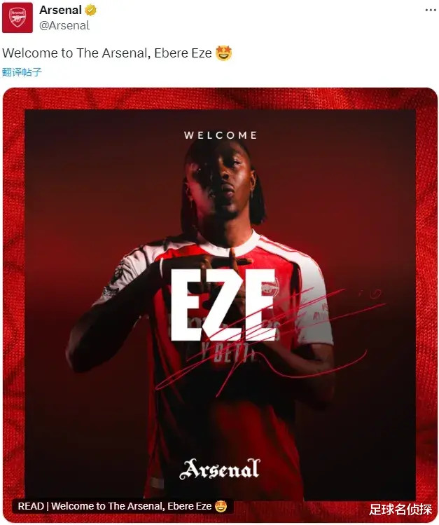 官方:阿森纳宣布从水晶宫签下了埃泽,双方签署了一份长期合同。